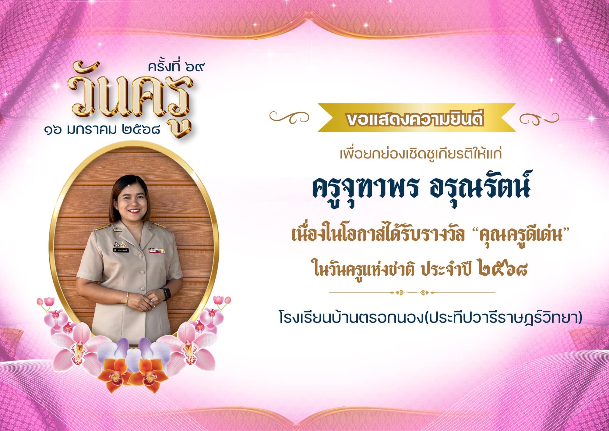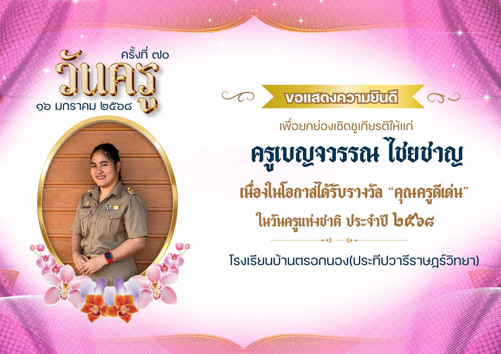 โรงเรียนบ้านตรอกนอง(ประทีปวารีราษฎร์วิทยา) ได้รับรางวัลสถานศึกษาปลอดภัย “ประเภทเกียรติบัตรดีเด่น” ได้รับรางวัลดีเด่นติดต่อกัน 2 ปีซ้อน ประจำปี 2568