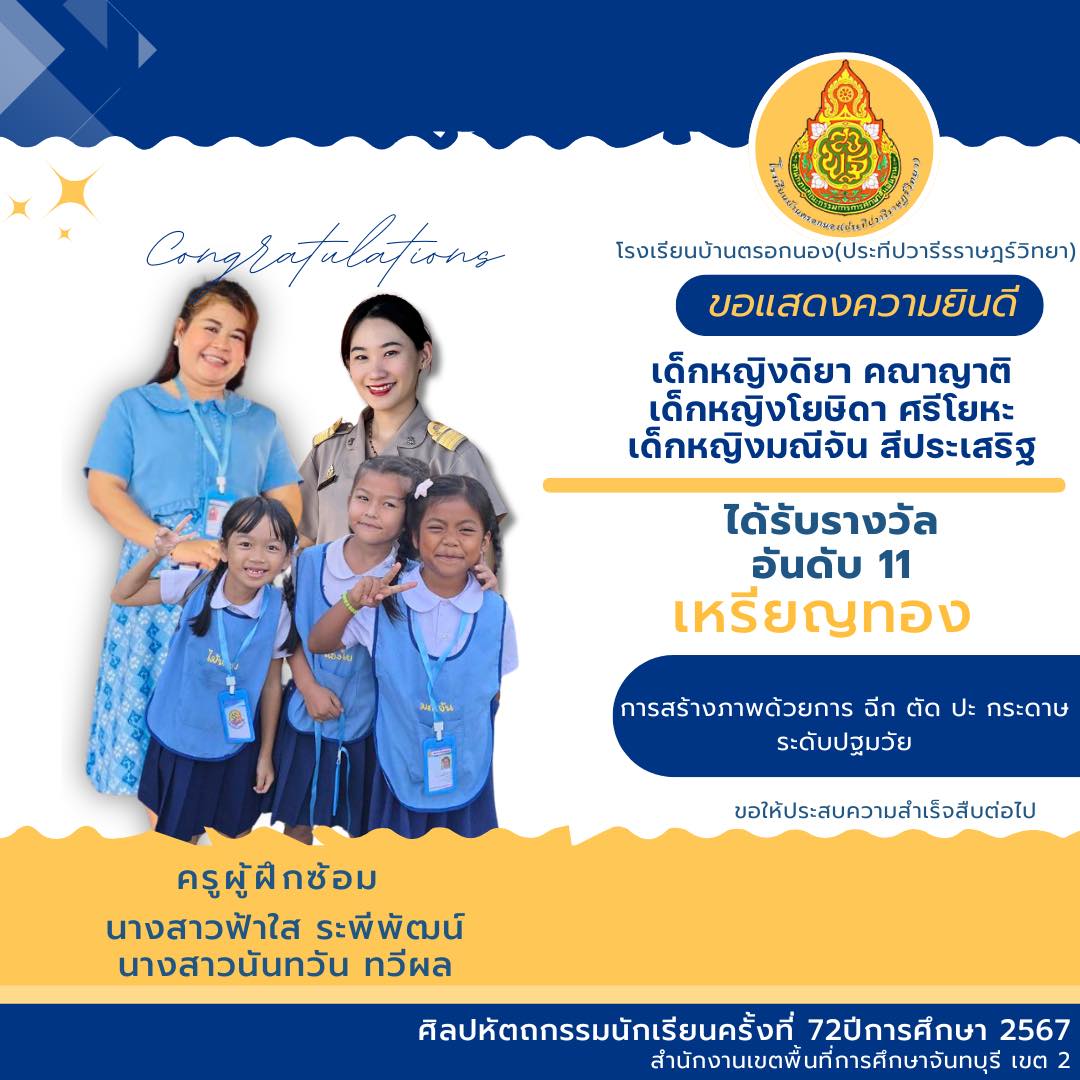 เหรียญทองอันดับ 11 การแข่งขันสร้างภาพด้วยการฉีก ตัด ปะ กระดาษ ระดับปฐมวัย