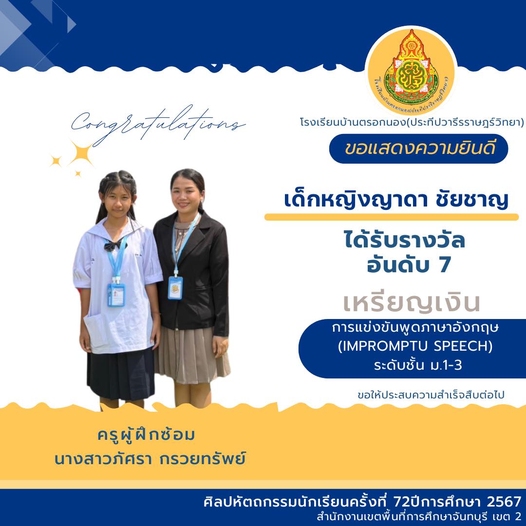 เหรียญเงินอันดับ 7 การแข่งขันพูดภาษาอังกฤษ ม.1-ม.3