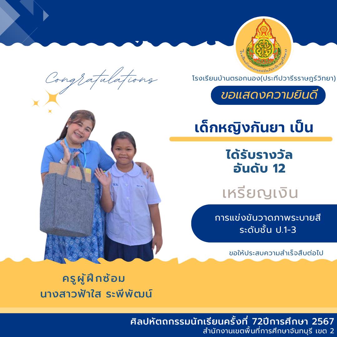 เหรียญเงินอันดับ 12 การแข่งขันวาดภาพระบายสี ป.1-ป.3