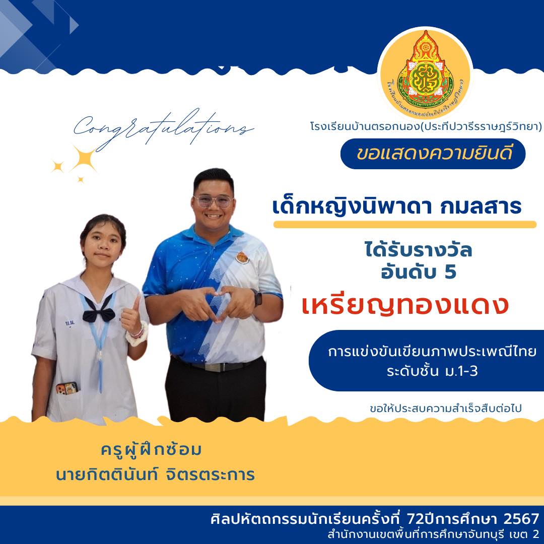 เหรียญทอง อันดับ 6 การแข่งขันจิตรกรรมเทคนิคผสม ม.1-ม.3