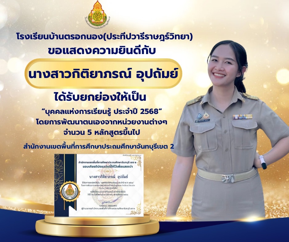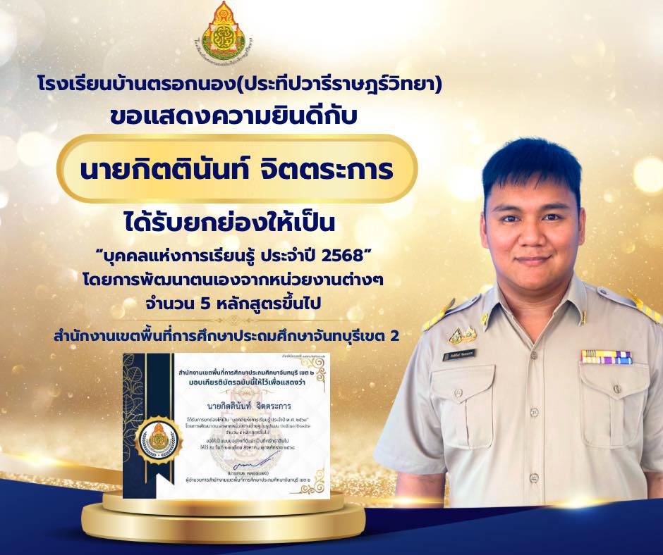 ได้รับการยกย่องให้เป็น “บุคคลแห่งการเรียนรู้ ประจำปี พ.ศ. 2568” ระดับเขตพื้นที่การศึกษาประถมศึกษาจันทบุรี เขต 2