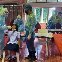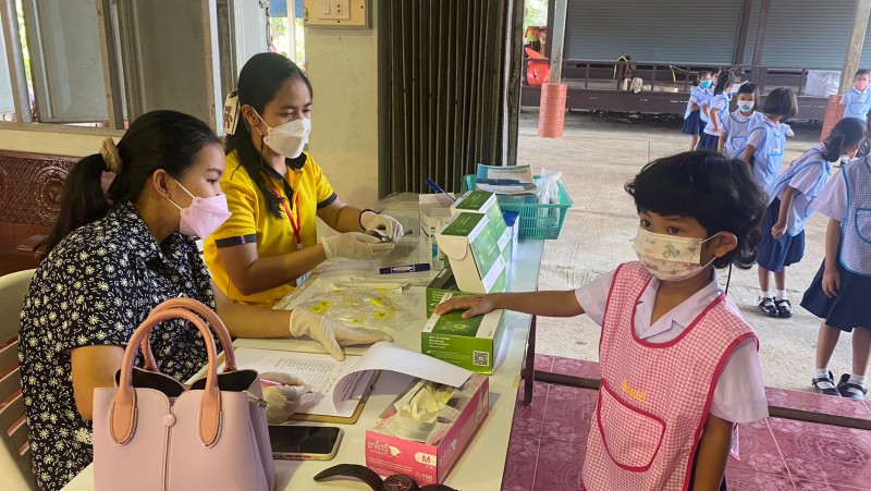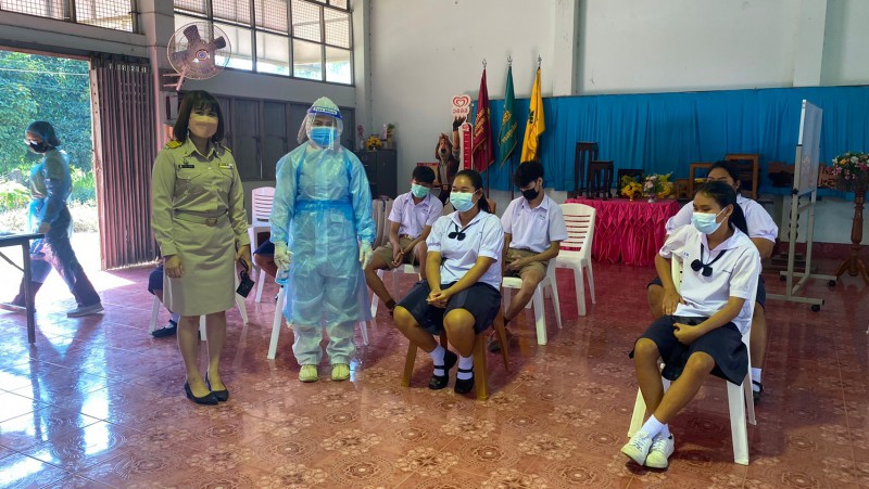 ผู้บริหาร คณะครู บุคลากรทางการศึกษา และนักเรียน เข้ารับการตรวจ ATK เพือตรวจหาเชื้อไวรัส Covid-19