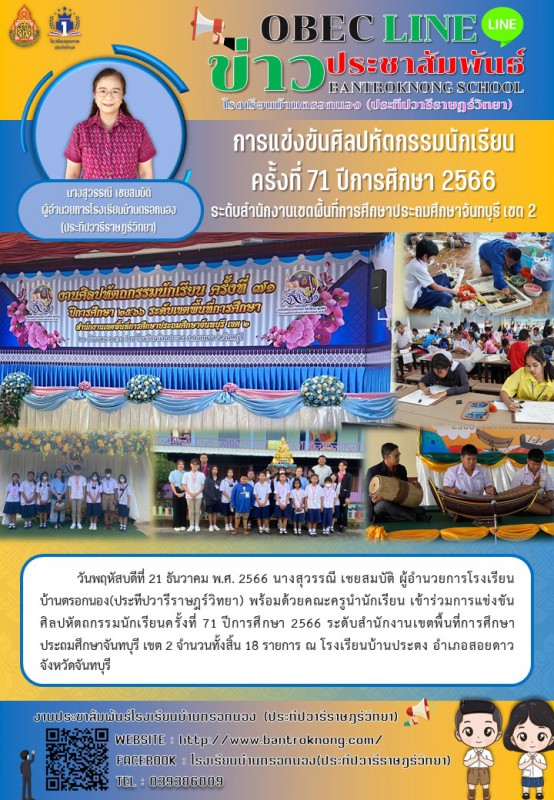 นักเรียนโรงเรียนบ้านตรอกนองฯ เข้าร่วมแข่งขันศิลปหัตถกรรมนักเรียนครั้งที่ 71 ระดับเขตพื้นที่การศึกษา