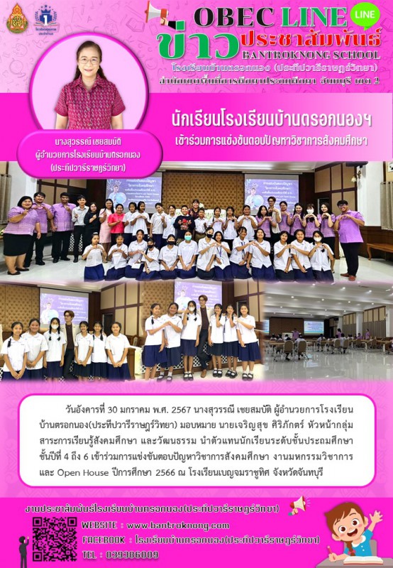 นักเรียนโรงเรียนบ้านตรอกนองฯ เข้าร่วมแข่งขันตอบปัญหาวิชาการสังคมศึกษา