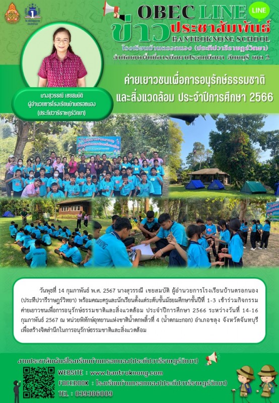 ค่ายเยาวชนเพื่อการอนุรักษ์ธรรมชาติ และสิ่งแวดล้อม ประจำปีการศึกษา 2566