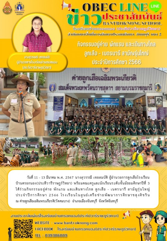 กิจกรรมอยู่ค่าย พักแรม และเดินทางไกล ลูกเสือ – เนตรนารี สามัญรุ่นใหญ่ ประจำปีการศึกษา 2566