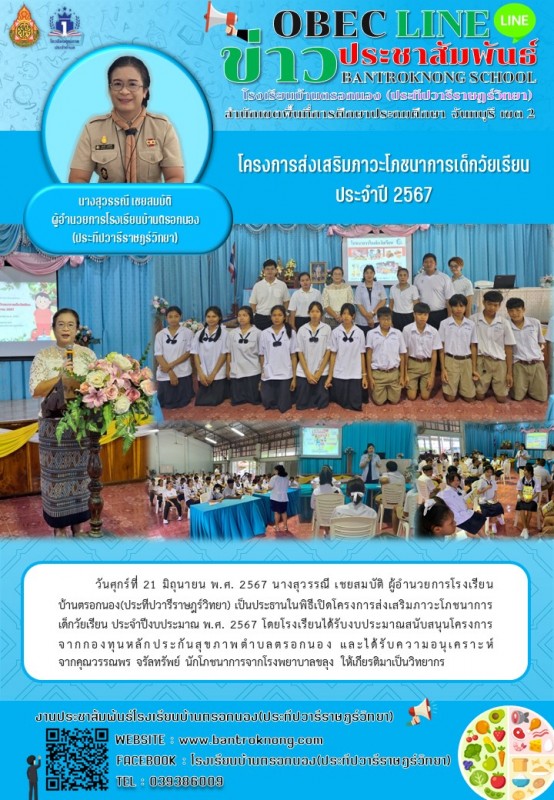 โครงการส่งเสริมภาวะโภชนาการเด็กวัยเรียน ประจำปี 2567