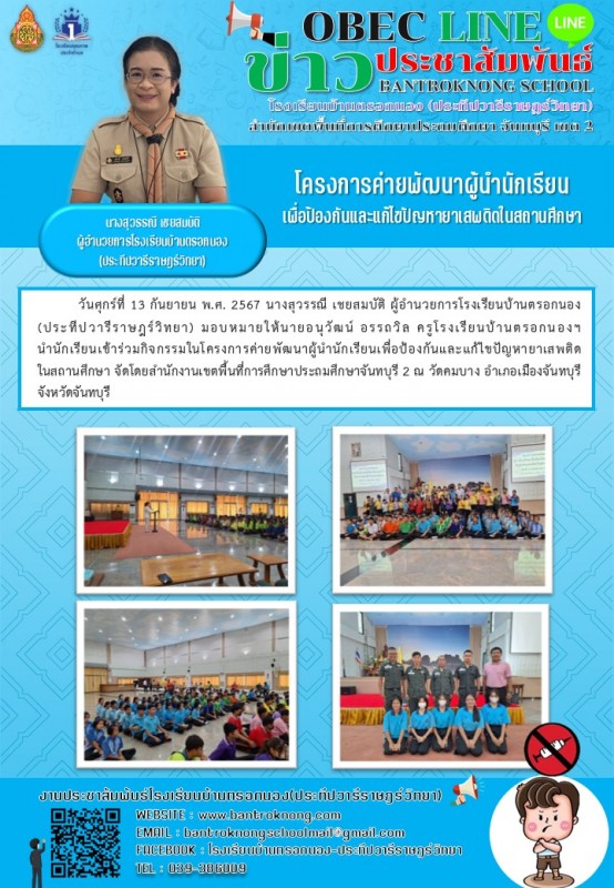 โครงการค่ายพัฒนาผู้นำนักเรียน เพื่อป้องกันและแก้ไขปัญหายาเสพติดในสถานศึกษา