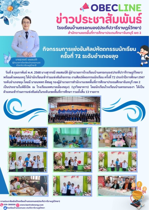 กิจกรรมการแข่งขันศิลปหัตถกรรมนักเรียน ครั้งที่ 72 อำเภอขลุง ปีการศึกษา 2567