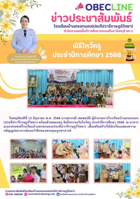 กิจกรรมโรงเรียน ประจำเดือนมิถุนายน ปีการศึกษา 2568