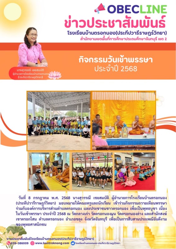 กิจกรรมโรงเรียน ประจำเดือนกรกฎาคม ปีการศึกษา 2568