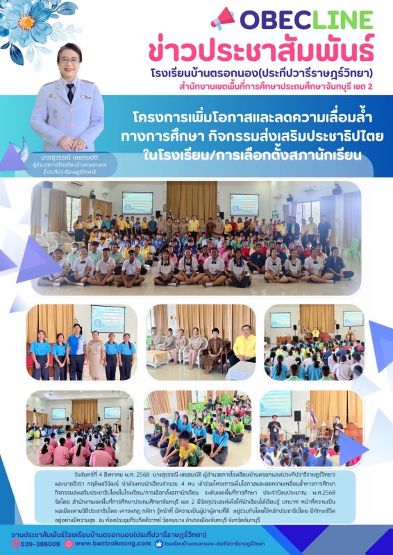กิจกรรมโรงเรียน ประจำเดือนสิงหาคม ปีการศึกษา 2568