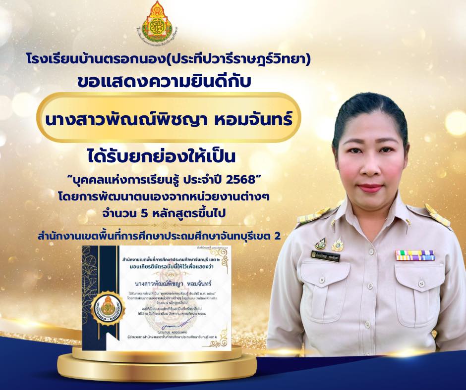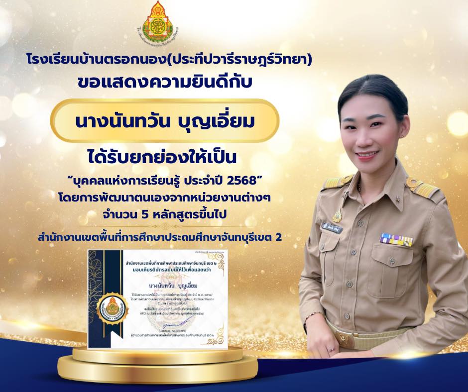 ได้รับการยกย่องให้เป็น “บุคคลแห่งการเรียนรู้ ประจำปี พ.ศ. 2568” ระดับเขตพื้นที่การศึกษาประถมศึกษาจันทบุรี เขต 2